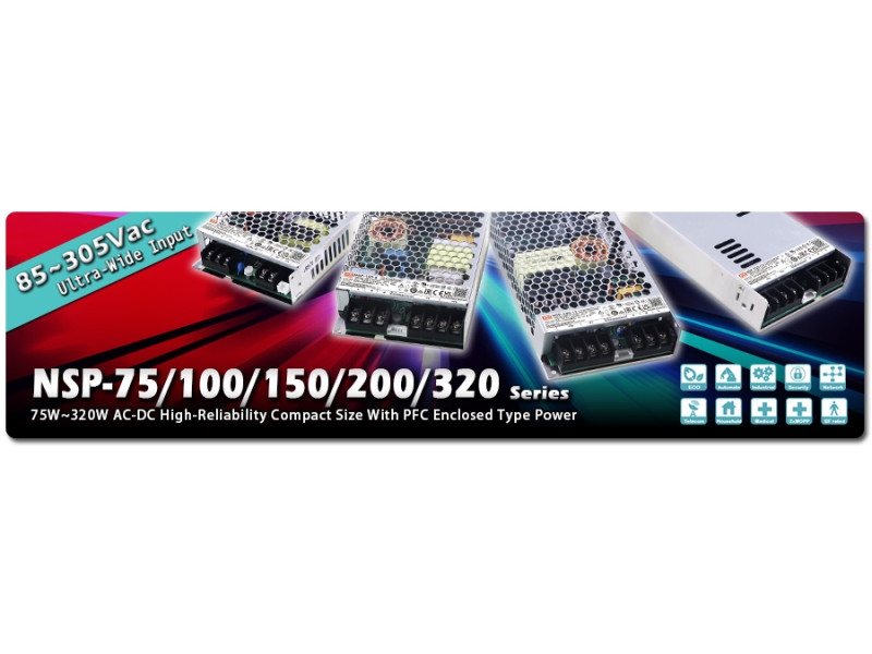 Серія MEAN WELL RSP-75/100/150/200/320 перебуває на ринку вже понад 10 років, завоювавши широке визнання з сукупним обсягом продажів понад 10 мільйонів одиниць. Ці продукти широко використовуються в промисловому контролі, комунікаційному обладнанні, архітектурному освітленні, системах безпеки та протипожежного захисту.